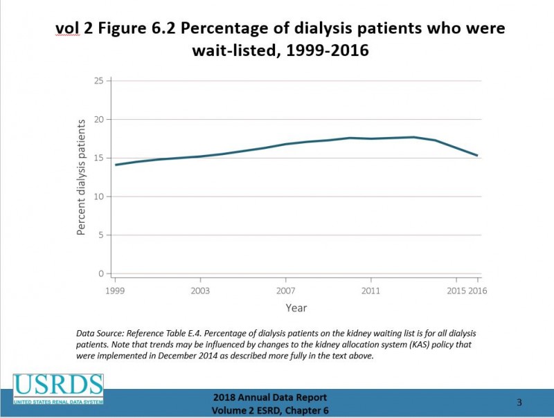 такой статистики нет. Большинство диализных пациентов моложе 70 лет (но, какой % - неясно) по формальным признакам могут быть включены в лист ожидания, у них нет противопоказаний к пересадке почки. Но решается вопрос в каждом случае индивидуально. В центрах Фрезениус этот процент довольно высок, но не помню сейчас, каков.