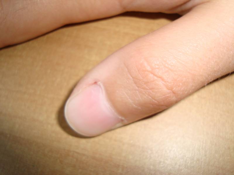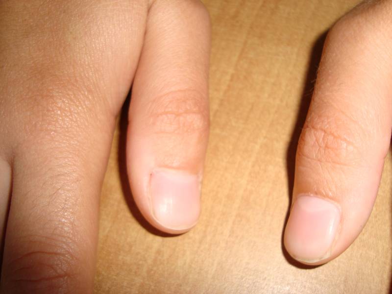 Валентина, Сейчас, в связи с быстрым развитием нефрологии и генетики, многие ситуации понимаются и оцениваются по другому. При таком течении болезни, как у Вики - раннее (по возрасту) начало, почти бессимптомное развитие протеинурии, неэффективность преднизолона - высока вероятность того, что это вовсе не гломерулонефрит, а генетическое заболевание. У 30% таких детей - причиной подобных симптомов является мутация одного из генов, кодирующих структурные белки клубочков. Ваш морфологический диагноз - мезангиопролиферативный гломерулонефрит- является абсолютно неспецифичным, т.к. отражает только данные световой микроскопии, а мезангеальная пролиферация - частый возможный признак при любых болезнях клубочков. Необходимое в Вашем случае генетическое исследование к сожалению и сейчас не выполнишь в России, но косвенные признаки именно генетической (а не иммунной) причины в ряде случаев можно выявить при электронной микроскопии биоптата почки. В Вашем случае это исследование не проводилось, как не проводилось и иммунофлюоресцентная микроскопия (очень важный метод для уточнения типа глормерулонефрита или его исключения) - такое было время. Тем не менее, в ряде случаев, генетическую причину можно диагностировать и по внепочечным симптомам. В цивилизованных странах у ребёнка с подобной клиникой прежде всего посмотрят на ногти большого пальца рук - они могут быть изменены или так (см. прикреплённую ниже картинку) или более грубо. Посмотрите у дочки вид ногтевой лунки - если она высокая и треугольная - похожая на картинку - то это, так называемый nail-patella синдром. При этой генетической болезни нередко (но не всегда) может быть недоразвитие надколенника и проблемы с коленными суставами. В любом случае в лечении сейчас я бы сделал акцент не столько на преднизолон, сколько на подбор максимально переносимых доз эналаприла или препаратов этой группы. И дело здесь не столько в артериальном давлении, сколько в уменьшении протеинурии. Этот препарат надо подобрать таким образом (при двухкратном приёме в день дозу постепенно медленно - 1 раз в 7-10 дней увеличивать по 1,25 мг эналаприла на приём до возникновения существенного снижения артериального давления - появление головокружения при переходе в вертикальное положение из горизонтального - после чего вернуться на предыдущую дозу - на 1,25 мг на приём назад - т.е. надо подобрать максимальную дозу, которая ещё не вызывает неприятных симптомов - головокружение, мелькание "мушек" перед глазами и т.д.). Подобранную дозу надо принимать пожизненно. С функцией почек, на мой взгляд, сейчас всё нормально - что очень важно! Посмотрите ниже картинку ногтей и напишите, что у Вашей дочери с этим.