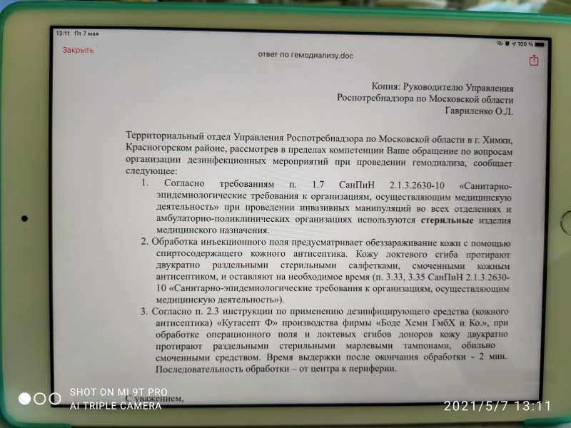 Семен, velcom в Роспотребнадзор и « таких пациентов» не будет )))! В своё время у нас в Красногорске во Фрезениусе меня убеждали , что можно работать не стерильными перчатками при подключении и отключении пациентов . Начали работать не стерильными перчатками. Я в том случае написала в Роспотребнадзор и полученный документ предоставила администрации. Стали работать стерильными перчатками.