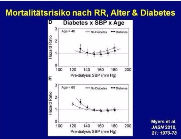 Цитата binnick (  ) а для кого 150 лучше, чем 120? в общей популяции уже года полтора, как американская кардиологическая ассоциация пересмотрела верхнюю границу, сдвинув ее до 150 мм рт ст (САД). Понятно, что у предиализного пациента есть свои ограничения, о которых не будем повторяться, но в диализной популяции статистика тоже подтверждает эту позицию. для примера- из второго слайда оцените сами, какие значения перспективнее пациенту с диабетом 70 лет, например... Поэтому 120 или 150- все должно решаться в каждом конкретном случае