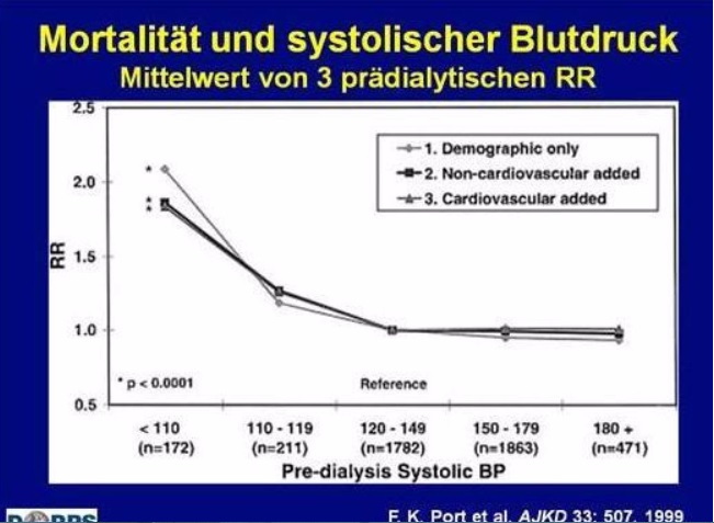 Еще раз к примеру того дедушки 70 лет с СД, положим, ригидными сосудами и САД перед диализом в 150 или 120...Думаю, понятно, в каком случае ультрафильтрация будет проходить в более экстремальном режиме со всеми прелестями ишемии. P.S. Не трактовать этот посыл как рекомендацию любому пациенту иметь предиализное САД 160 мм рт ст