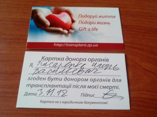 На сайте transplant.zp.ua есть ссылки - собственно сам сайт - площадка для дискуссий о трупном донорстве и место регистрации донорской карты.