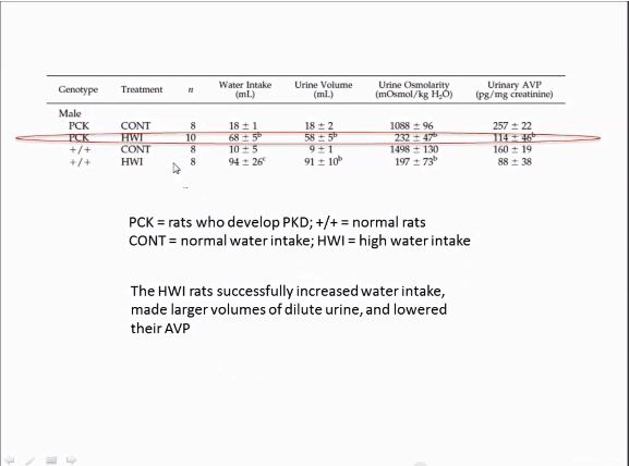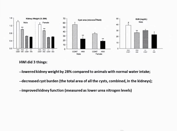 Цитата Masim (  ) Она мне посоветовала пить больше воды, так как это ингибирует вазопрессиин, который может влиять на рост кист. Да, есть такая теория, и вроде бы даже она подтверждается. У нас на форуме не один раз про это написано, только непонятно, сколько именно нужно пить воды, чтобы затормозить рост кист. Когда исследовали эффект на грызунах, получилось, что пить надо слишком много, человеку трудно выпить соответствующее его размеру количество воды. И изучал ли кто-нибудь вред, который может быть нанесен неуемным питьем? И, наверно, Вы читали про Толваптан.