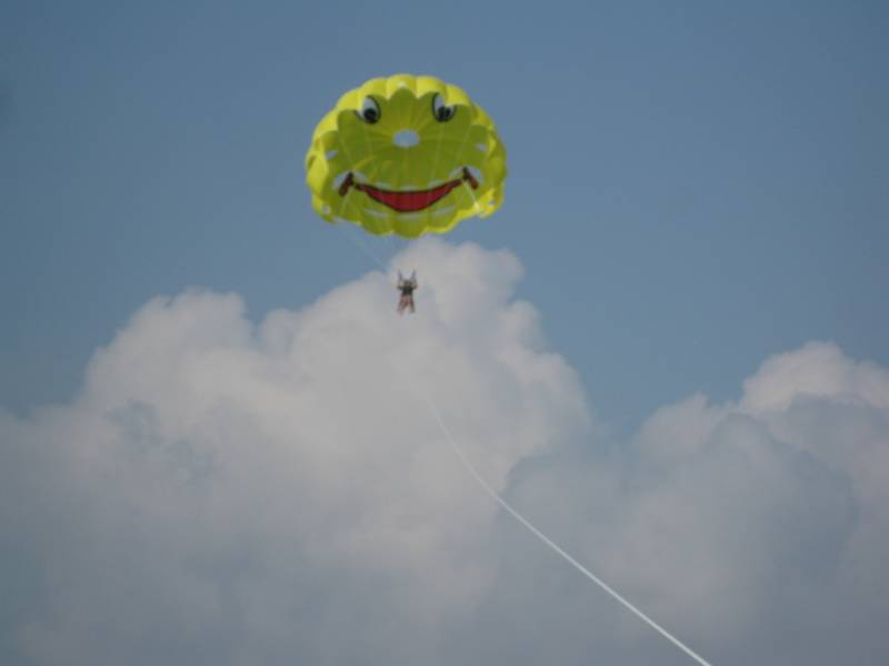 Тоже на парашют залезла? Ай, молодца! Понравилось?