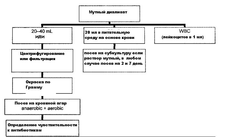 Пациенты, у которых посевы остаются неоднократно отрицательными, несмотря на наличие мутного диализата должны быть обследованы на наличие других причин.