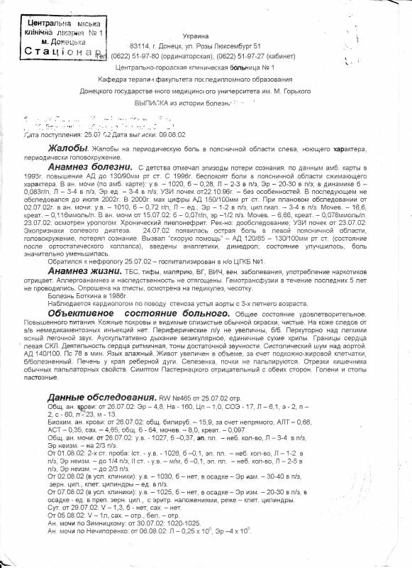 ой еще забыл- помимо глоумеронефрита у меня врожденный порок седца а сейчас из-за сидячей работы - очень сильно увеличен вес