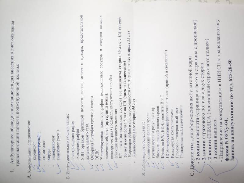 Кстати, сказали, что даже если будут все анализы и разрешения от врачей на руках, то приходить надо лично. Никто другой (даже родственник) не может их принести и заочно поставить тебя в очередь нуждающегося. Да, и встать на очередь можно и с обеими почками, но к моменту трансплантации обе почки при поликистозе должны быть удалены. При других заболеваниях не спрашивала.