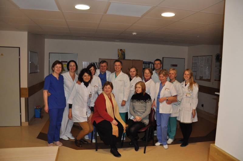 28.11.13 Конечно, огромное спасибо руководителю нефрологического центра клиники, профессору Миглинасу, мы с самого начала контактировали только с ним, он решал все организационные вопросы, мы отправляли ему все документы и выписки.И сейчас мы лежим у него в нефрологическом центре, он почти каждый день заходит лично. Кроме того, что он знающий своё дело, квалифицированный специалист, он ещё очень хороший отзывчивый человек. А вот оперировали нас в урологическом центре, одновременно два хирурга: меня - доктор Аудрюс Римас , а Юлю - доктор Арунас Желвис. Фамилий аенестезиологов я, сожалению, не запомнила (литовские фамилии+ их произношение - с первого раза не и выговоришь).У меня была анестезиолог женщина, сказала, что зовут её Диана.И им всем тоже мы с Юлей очень благодарны за успешно проведённую операцию, что явилось залогом быстрого восстановления ( особенно у Юли)