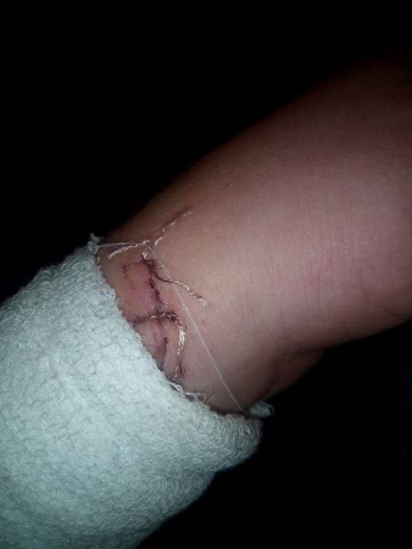 Наш шов...Обмотано эластичным бинтом, который можно отвернуть-завернуть...Разве можно пережимать или пока заживет нужно? Пару дней назад еще был бинт...