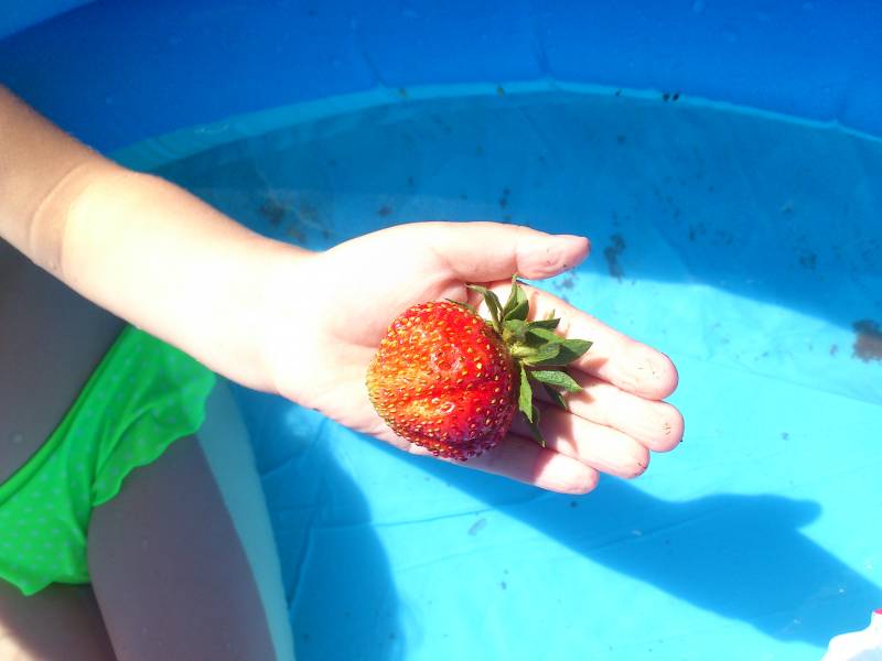 Сегодня взяла внучку на работу и бассейн прихватили,мы его всегда с дедкой летом на речке накачивали,а теперь вот на работе.температура воздуха у нас 38 сегодня.
