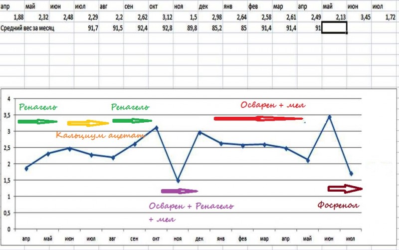 вот, с апреля 2016. Принимал Осварен, Ренагель, мел, кальциумацетат нефро.