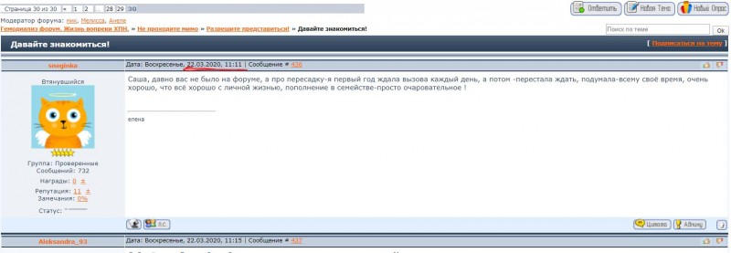 Добрый вечер всем! Сейчас смотрела тему Aleksandra_93. А там на последней странице сообщение от Снежинки-Елены. И кажется, что она жива, только что написала.... а это было 22.03.2020. Захотелось, чтобы ее тема еще раз всплыла наверх... Мы и в лицо ее не знали.... Но тепло ее души ощущалось постоянно...