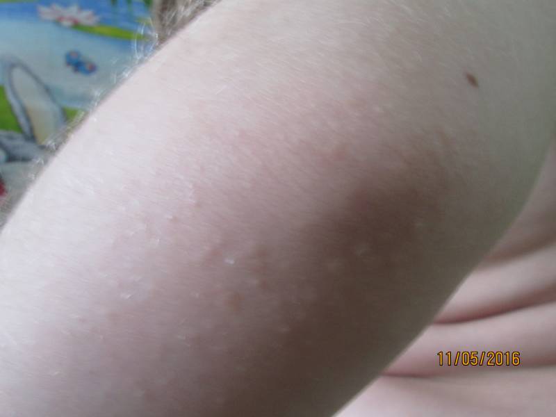 вот еще на локте попробовала сфоткать. и кстати они у нее не чешуться