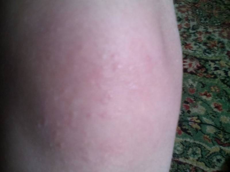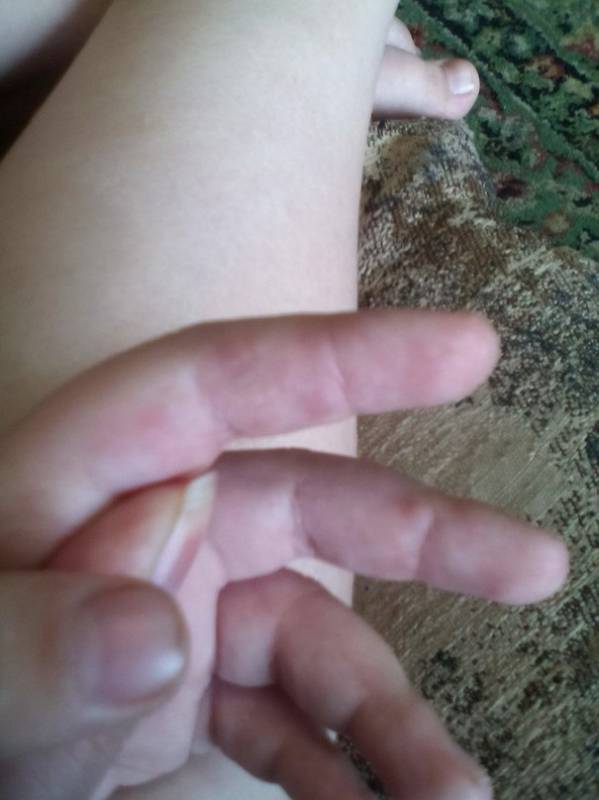 Извеняюсь за качество-но ттолько так получилось на телефон сфотать. Вылазиют в таких местах-пальцы, колени,локти( как при псориазе) не чешуться, иногда становяться красными, не водянистые-на пальцах вообще больше похоже на бородавки( но дерматолог говорит точно не они)Не дает пофотографировать-отсылаю фото колена и пальца