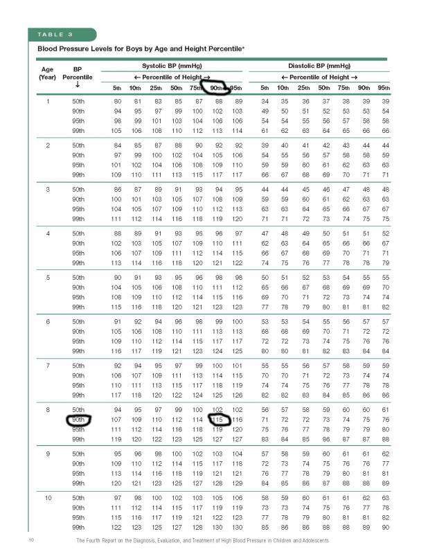 Цитата (DinaIman) давление бывает в среднем 115/70 Да - это гипертензия для росто-возрастных параметров Вашего ребёнка. В прикреплённом файле (2 страницы) - 2 таблицы - 1я- определение перцентиля роста по возрасту и вторая - определение артериального давления по возрасту и перцентилю роста.