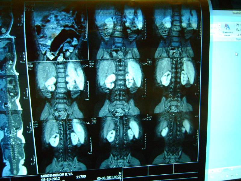 Уважаемый доктор просим посмотреть снимки и нашего сына! Возраст 10 мес. два близнеца однояйцевых у одного поликистоз у второго нет. Можно ли понять тип поликистоза детский или взрослый? Можно ли отправить диск со снимками мрт Вам если можно то куда? К генетикам пойдем в ближайшую среду. Заранее огромное спасибо!!! Попробуем еще фото выложить