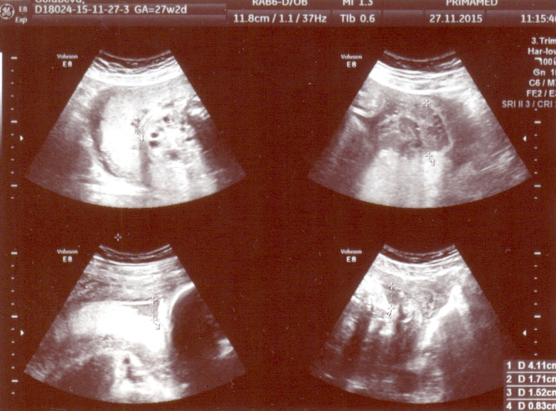 Михаил Юдович,прикрепляю снимки.Заранее благодарна!Вы дали нам надежду и может сегодня ночью я посплю.Да кстати мне 39 лет и это мои 2 роды,первому ребенку 16 лет и никаких проблем с почками у него нет.Хотя у меня до 1-й беременности один раз были проблемы -в 1998году и что-то там было( 1 почка увеличена и раздвоена).Но после этого ни разу за 16 лет я про почки не вспоминала,еще у меня резус отрицательный у мужа положительный.Может какие-то из этих признаков повлияли на эту патологию?