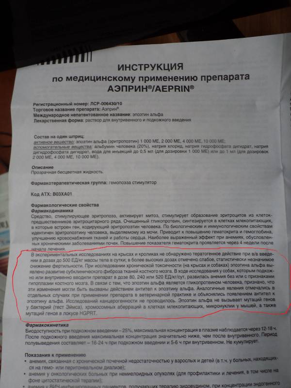 Мне выдали препорат Аэприн (Международное непатентованное название: эпоэтин альфа). В анотации написано, что это лекарство испытано только на животных и там очень много побочных эффектов. Я спросил у нашего врача на диализе, он сказал что это лекарство тоже самое что и Эпоэтин только другой производитель, но я все-равно боюсь его колоть. Подскажите пожалуйста, кто-нибудь его уже колол, и помогает ли оно вообще?