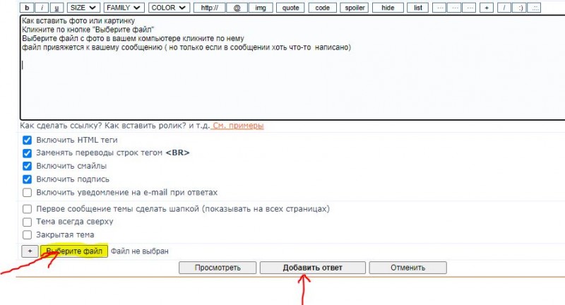 файл привяжется к вашему сообщению в виде прикрепления ( но только если в сообщении хоть что-то написано)